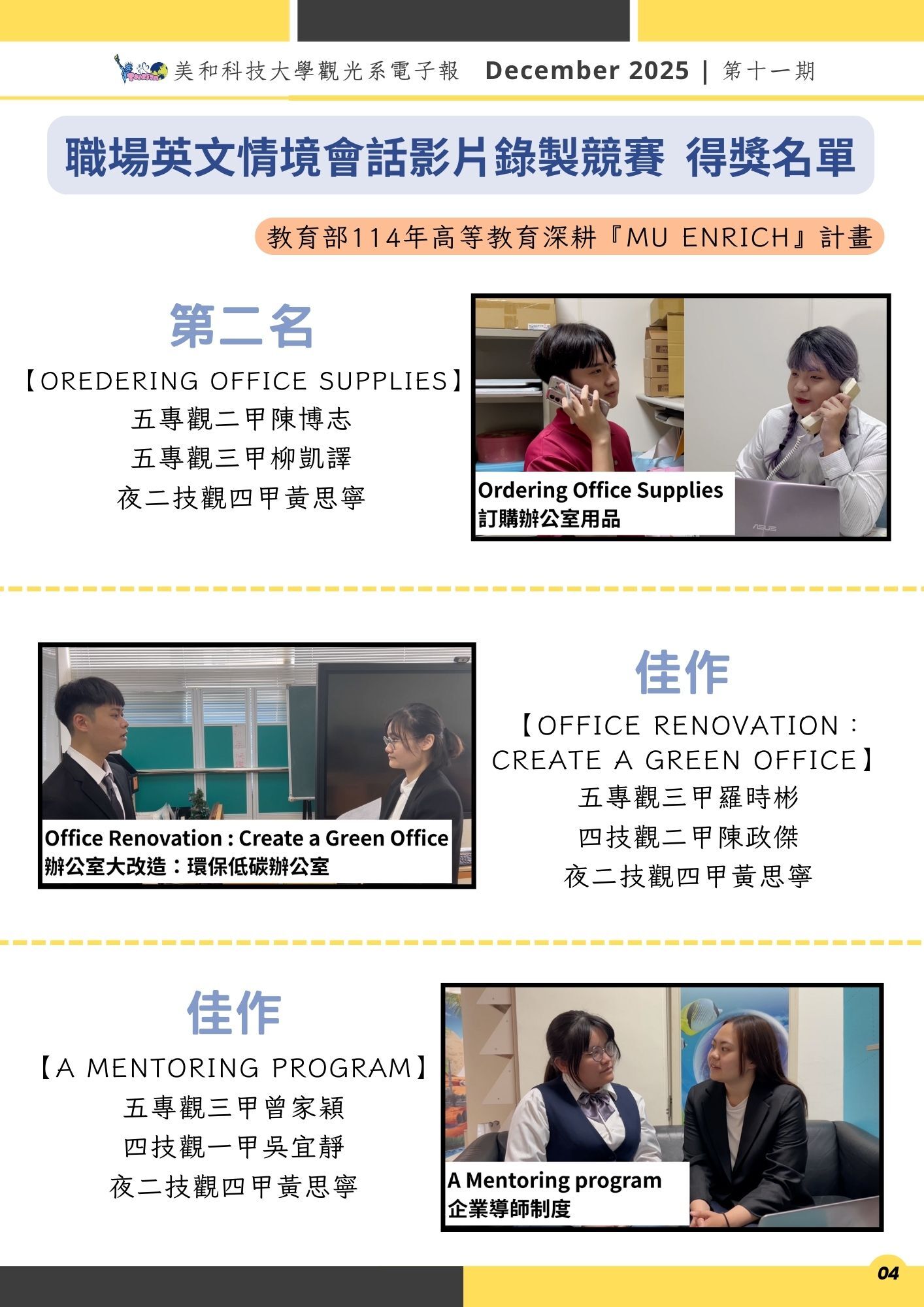 美和科技大學觀光系電子報第十一期